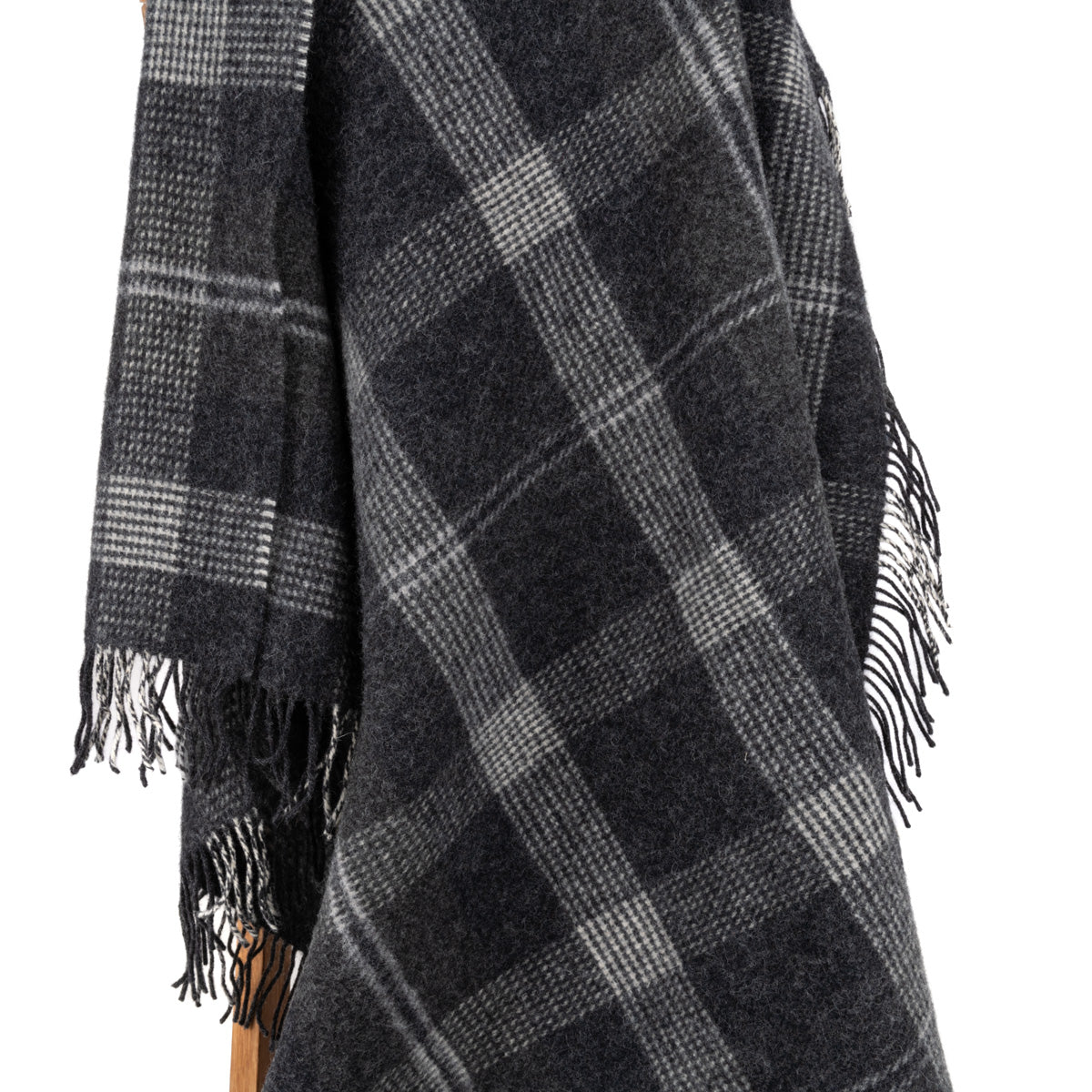 Anthrazitfarbene Kniewolldecke mit Streifen