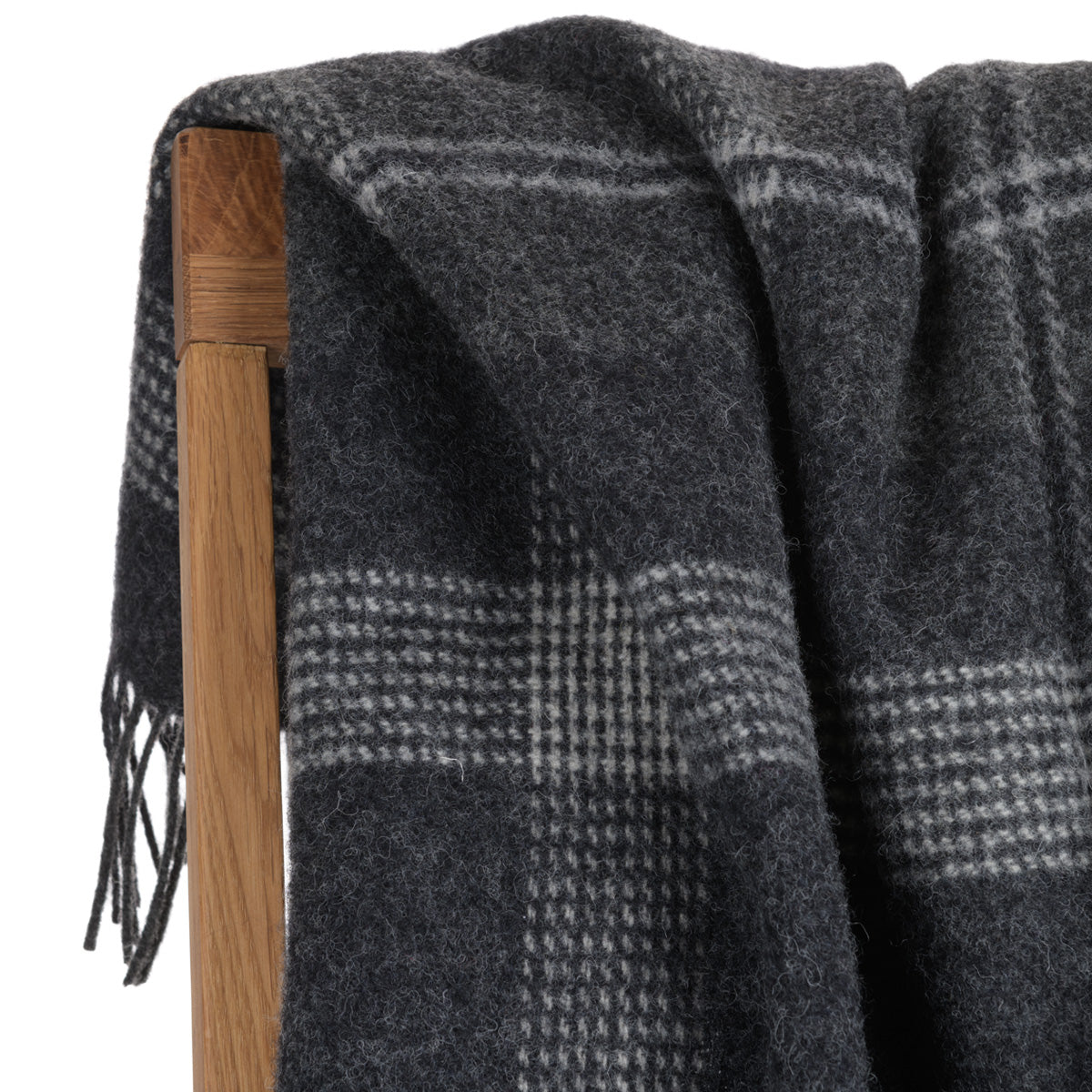 Anthrazitfarbene Schurwolldecke mit Streifen