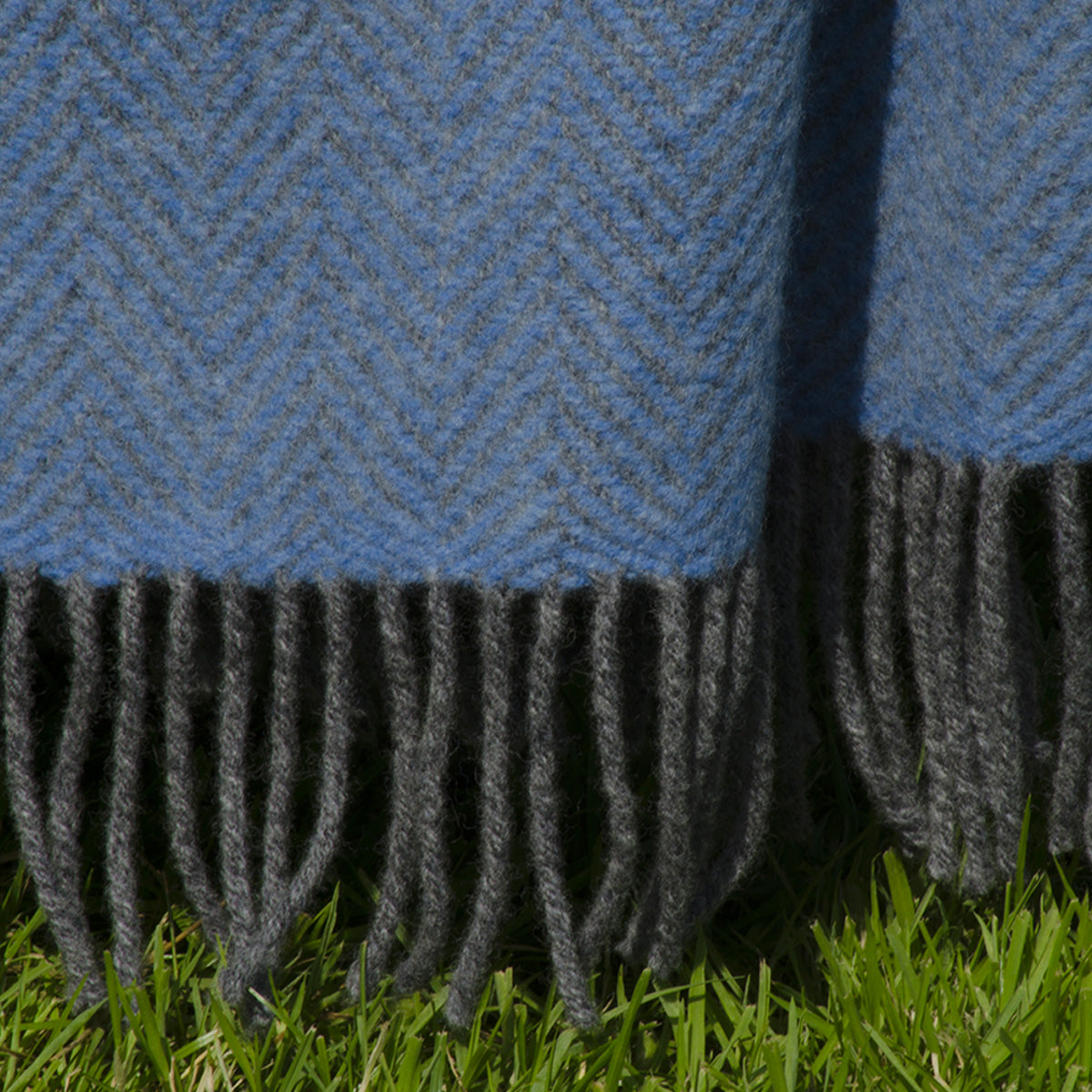 Gemütliche, sehr weiche und leichte Kaschmir-/Merino-Wolldecke in Blau/Grau.