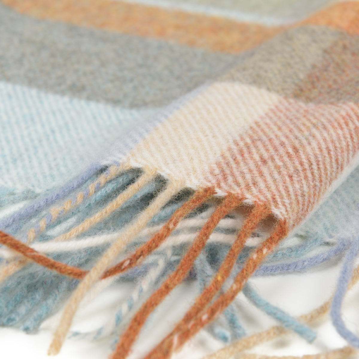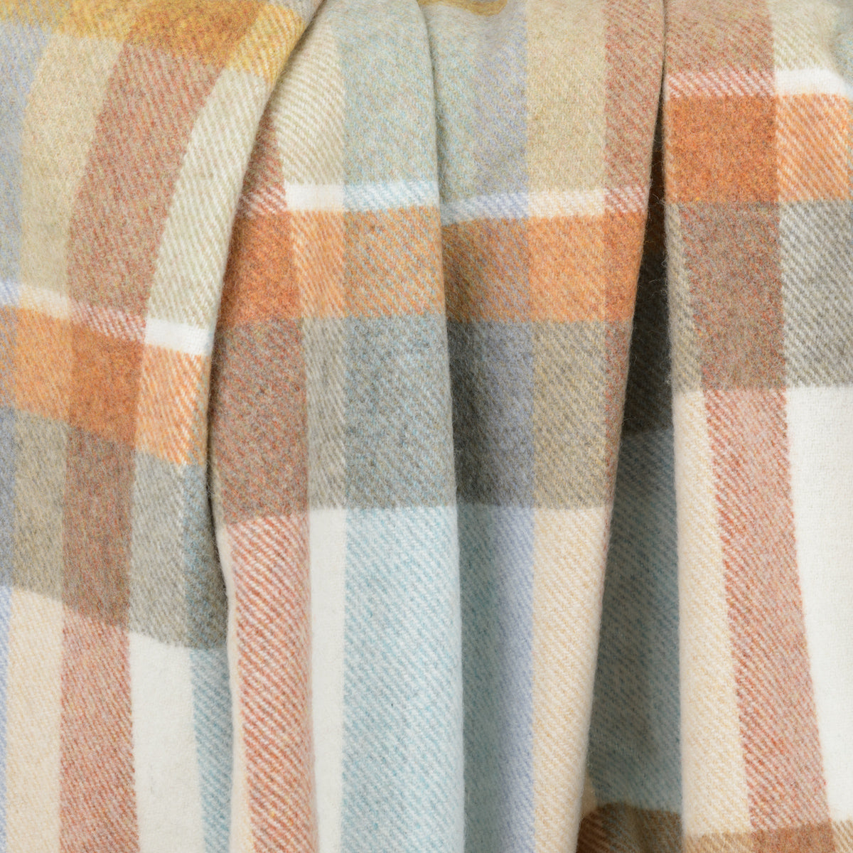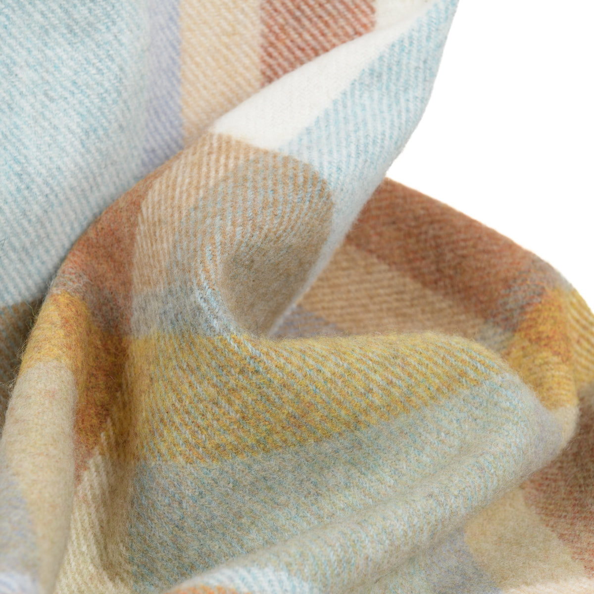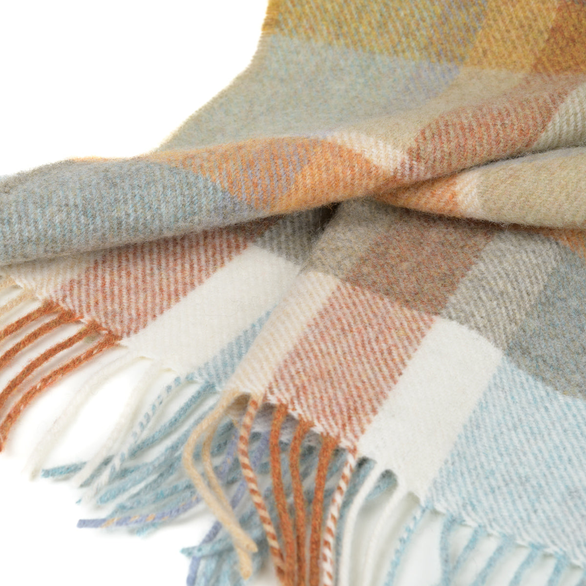 Feine Merino-Lambswooldecke mit einem großzügigen Maß von 150 x 200 cm! Eine tolle, sehr frische Farbkombination aus unzähligen, bunten Rechtecken in einem Kreuzmuster. Eine qualitativ sehr hochwertige, warme und weiche Wolldecke.