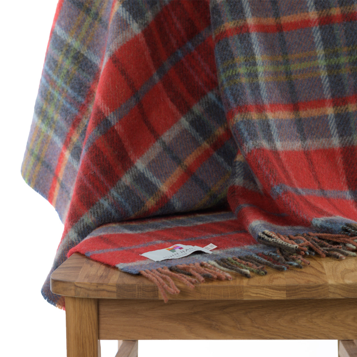 Eine wunderbar warme, robuste Decke aus reiner Schurwolle in klassischem Design. Sie ist langlebig und vielseitig einsetzbar, z.B. für einen Picknickausflug oder einen gemütlichen Abend vor dem Kamin! Das klassische Muster erinnert an frühere Zeiten, dennoch sind diese Muster immer noch hochaktuell! Schöne Farben, sehr ländlich. Die irische Weberei John Hanly steht zu ihren Klassikern! Beidseitiger Fransenabschluss.