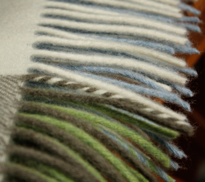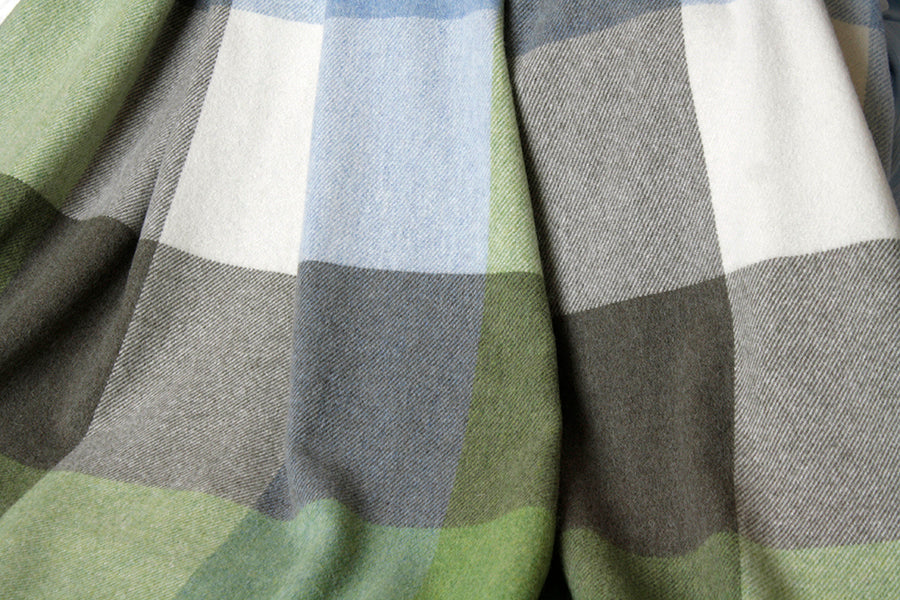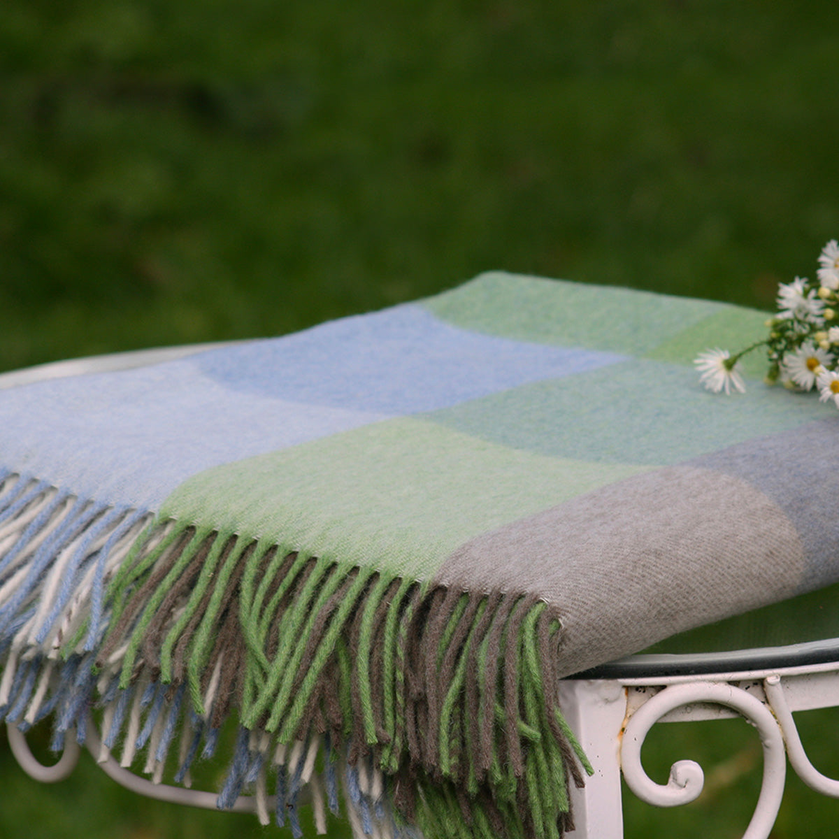 Diese Karo-Decke ist aus feinster Lammwolle in Naturtönen gewebt, inspiriert durch die irische Landschaft: Grün wie das Gras, Braun wie der Torf, Blau wie das Meer und Cremerfarben wie die Schafe! Sie ist sehr eng gewebt und dadurch dünner als andere Decken aus unserem Sortiment. Das macht sie zu einem eleganten Schmuckstück. Eine qualitativ sehr hochwertige, feste, warme und weiche Kuscheldecke aus Irland!