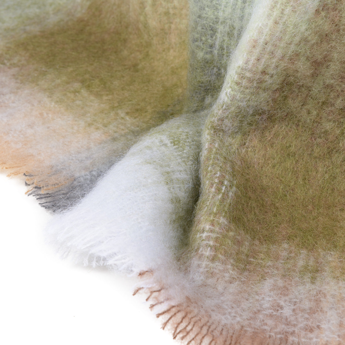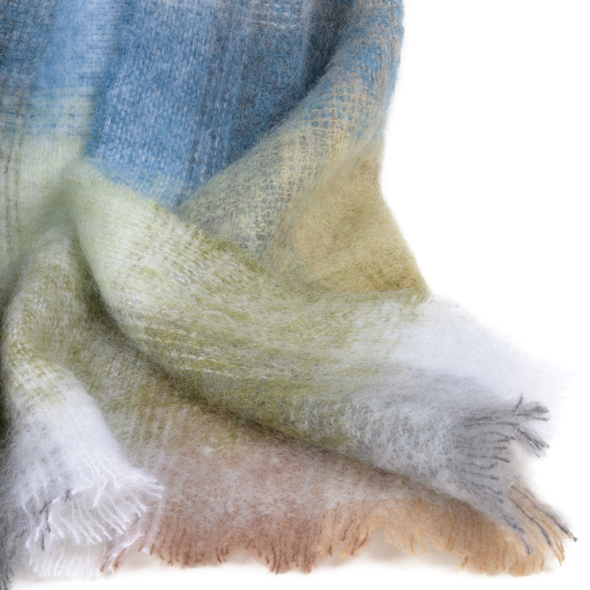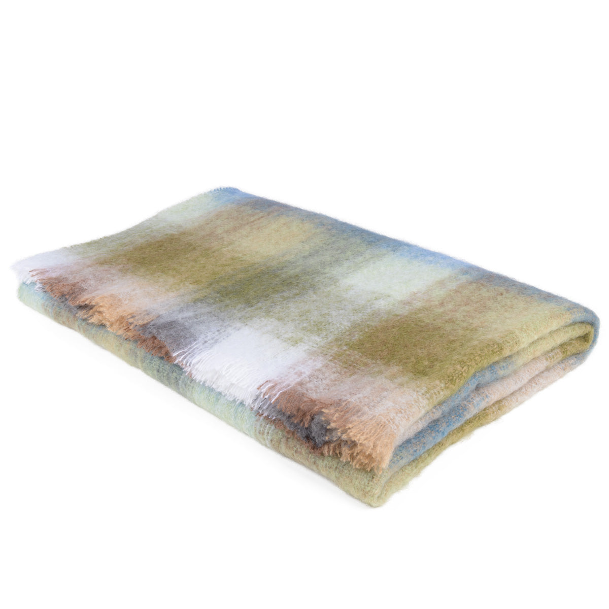 Diese herrliche Decke stammt aus Irland und ist aus 70% Mohair und 30% Wolle gefertigt. Sie ist von auffälligen Hellblautönen durchzogen und fühlt sich unglaublich weich an. Die Verwendung von erstklassigem Mohairgarn sorgt für ein flauschiges Gewebe, das wunderschön fällt und eine hervorragende Wärmeisolierung bietet. Diese kuschelige Decke ist von exquisiter Markenqualität und verfügt an beiden Seiten über interessante Abschlüsse aus kurzen Einzelfäden. Sie wurde von der renommierten irischen Weberei "John Hanly" entworfen und gefertigt, die seit 1893 für höchste Qualität und Verarbeitung steht. Ob als persönliche Belohnung oder als Geschenk für besondere Menschen - diese Decke ist eine großartige Wahl!