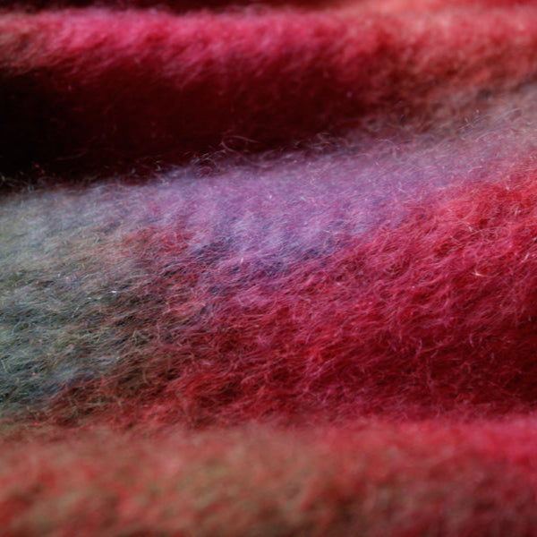 Diese wunderschöne, leichte Decke aus 70% Mohair und 30% Wolle hat eine besondere Optik. Sie erscheint in herrlich bunten Farbtönen von rot, über grün zu blau/lila, alle Farben laufen irgendwie ineinander! Die Karos von ca. 8 cm x 10 cm sind durch die Grundfarbe voneinander abgetrennt. Die Decke ist aus weichestem Mohairgarn gewebt. Das flauschige Gewebe fällt sehr schön und macht die Decke zu einer der Wärmsten.