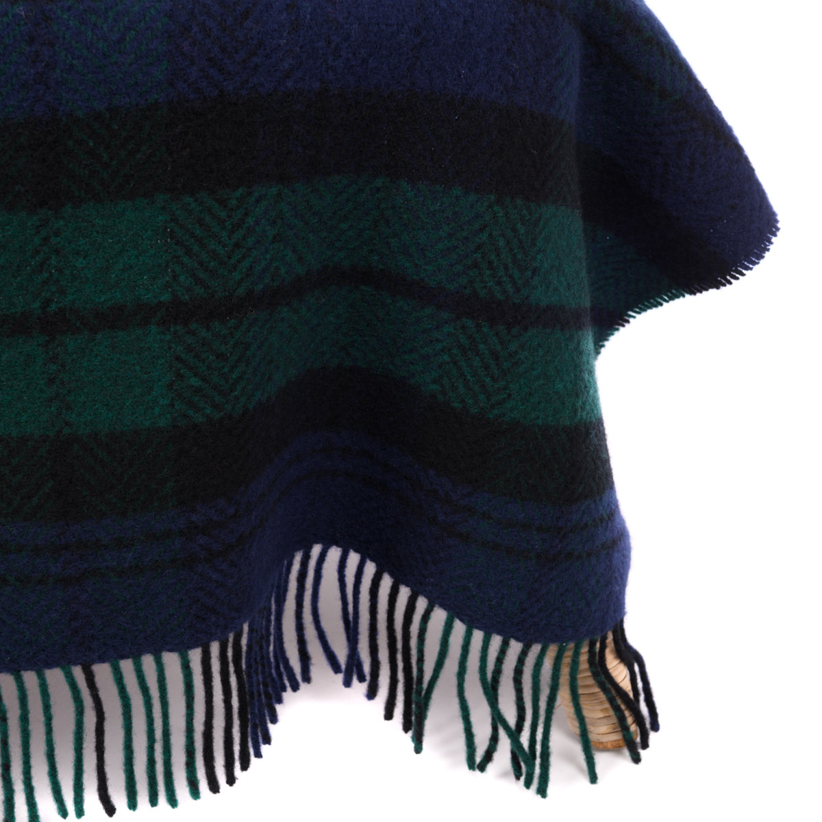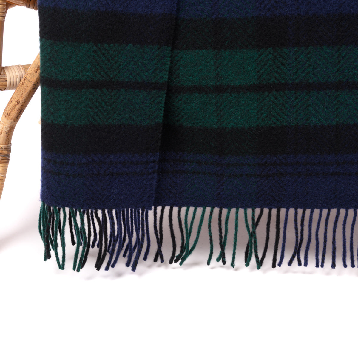 Blackwatch. Dieses klassische, schottische Muster ist bereits 1739 als Uniform getragen worden. Über die Jahrhunderte wurde dieses verändert und neu interpretiert. Diesmal hat die Weberei John Hanly auch neue Materialien eingesetzt. Feine Schurwolle (Merino) mit Kaschmir machen die Decke kuschelweich und angenehm in der Haptik. Sie wird in Irland gewebt.