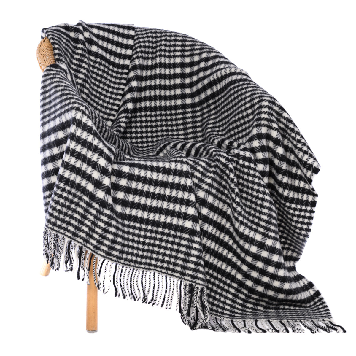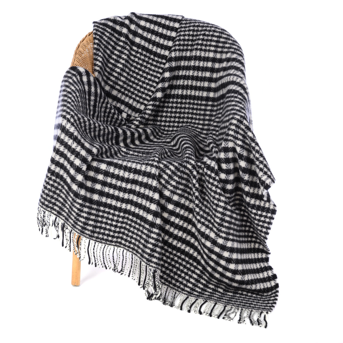 Eine wunderschöne Decke im klassischen Hahnentritt-Muster aus sehr kuscheliger, weicher Schurwolle (Merino) mit Kaschmirbeimischung. Hergestellt in Irland von der Traditionsweberei John Hanly.