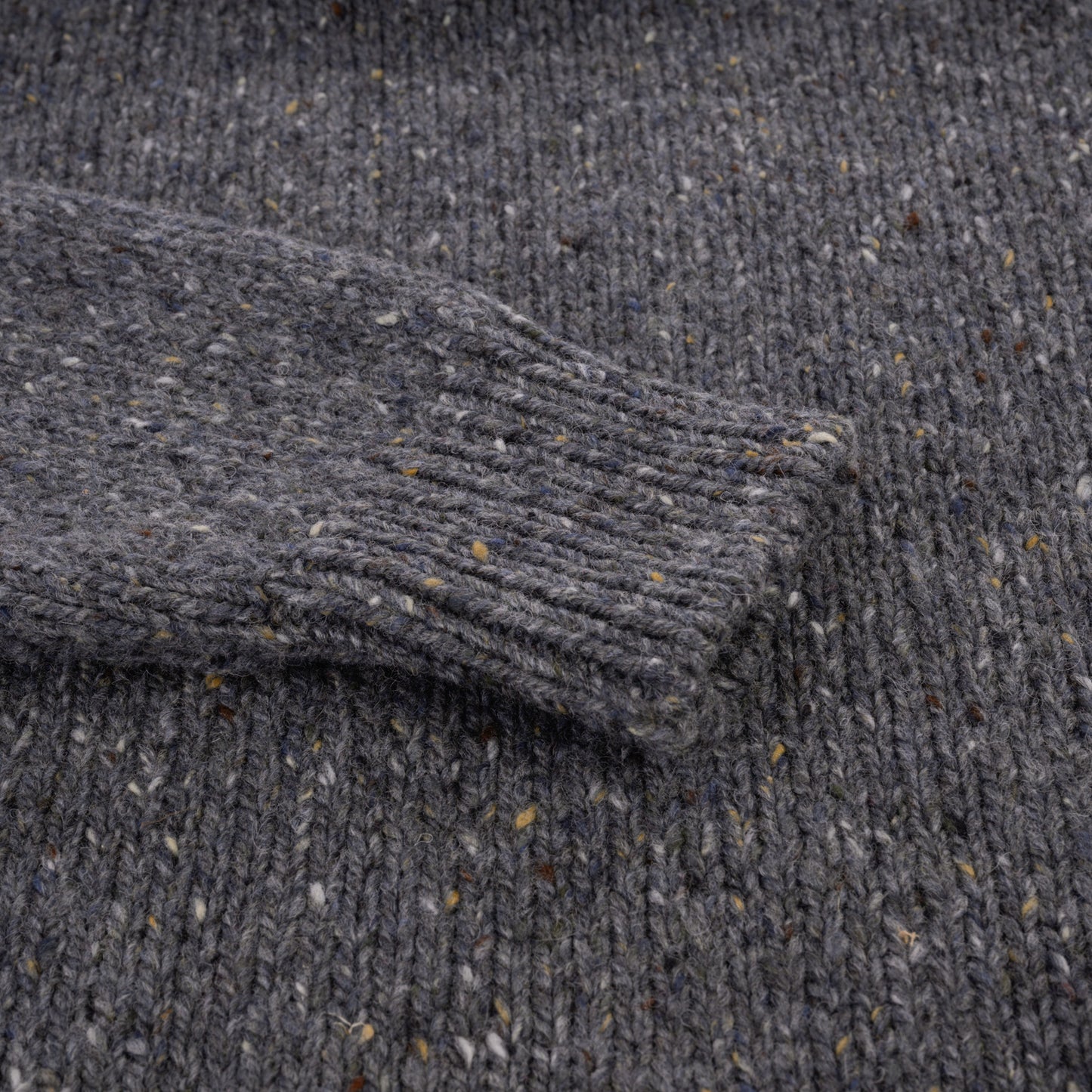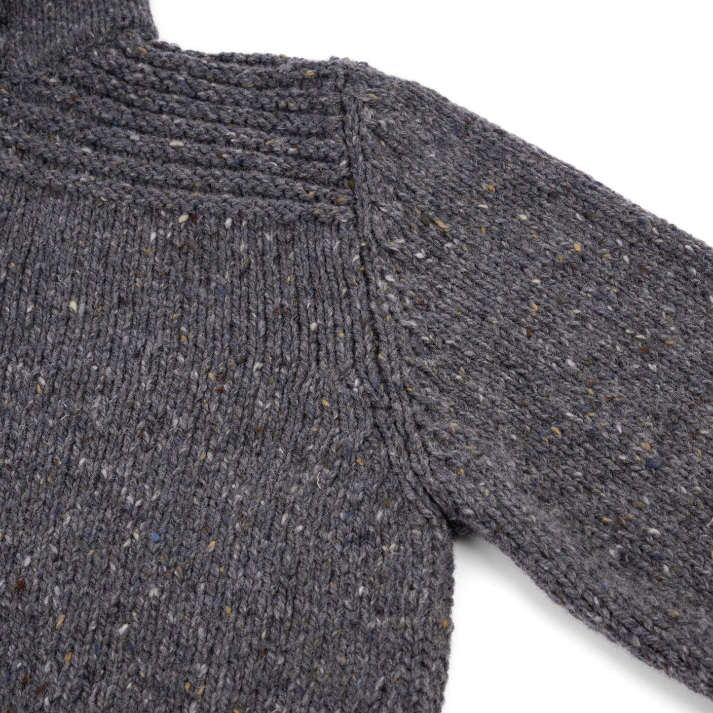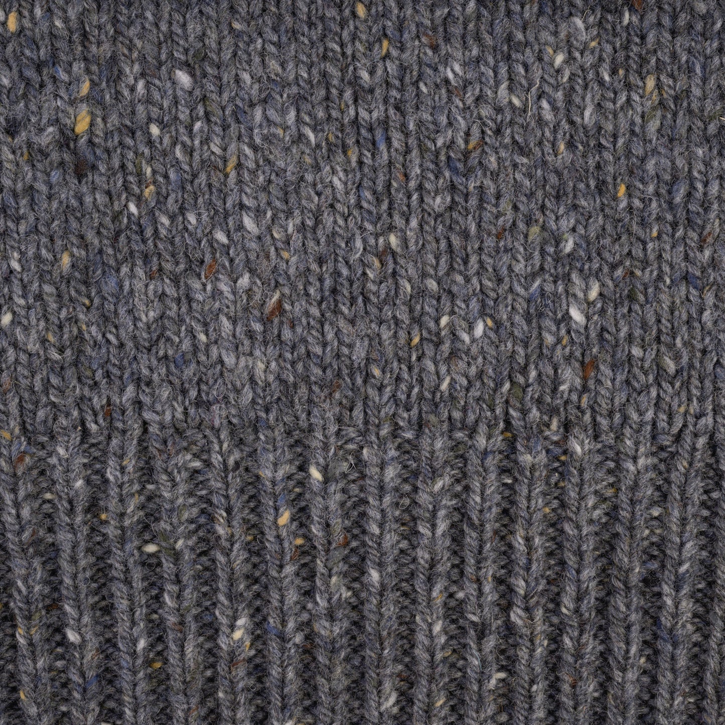 Die melierte Wolle dieses Pullovers mit bunten Farbtupfern – Donegal Fleck genannt – wird im Nordwesten Irlands gesponnen, unweit der Firma Fisherman Out of Ireland.