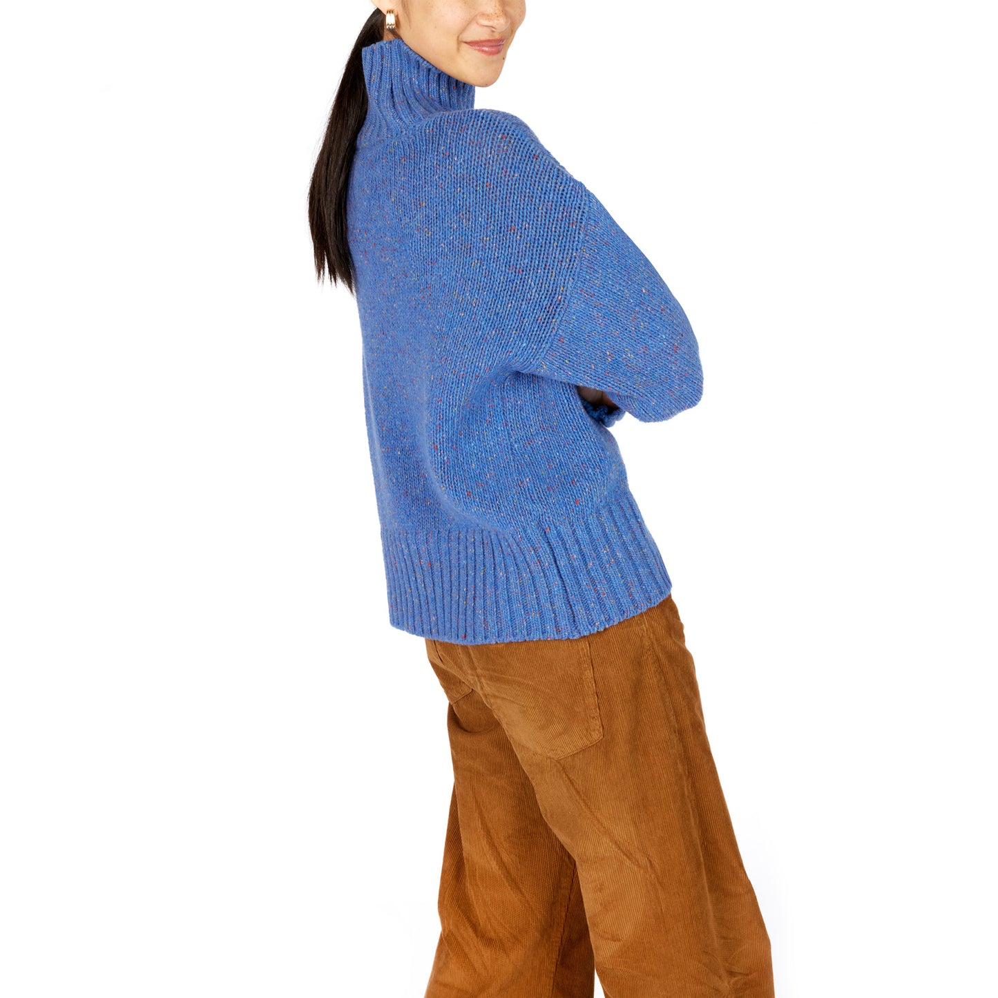 Die weiten Ärmel und die Rippenstrickbündchen verleihen dem Design eine moderne, mühelose Silhouette, während die kräftigen Farben jedem Outfit Lebendigkeit und Ausdruck verleihen. Ob zur Jeans, über einem Kleid oder zur schicken Stoffhose – dieser Pullover bringt Stil und Komfort in perfekte Balance.