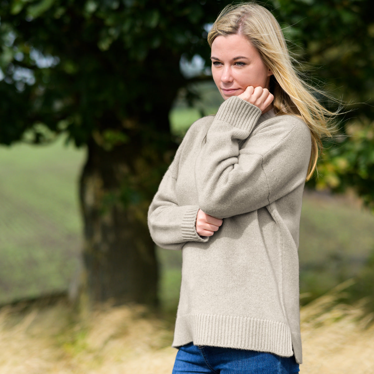 Unsere Damenpullover sind aus verschiedenen natürlichen Materialien wie reiner Merinowolle, Kaschmir, Baumwolle oder Seide hergestellt. Diese Materialien sind zu 100% natürlich und bieten somit eine nachhaltige Option für umweltbewusste Kunden. Die Pullover sind weich und warm und eignen sich ideal für den Herbst/Winter oder kühle Abende. Der oft zeitlose Stil der Pullover macht sie zu einer langfristigen Investition für die Garderobe jeder Frau.
