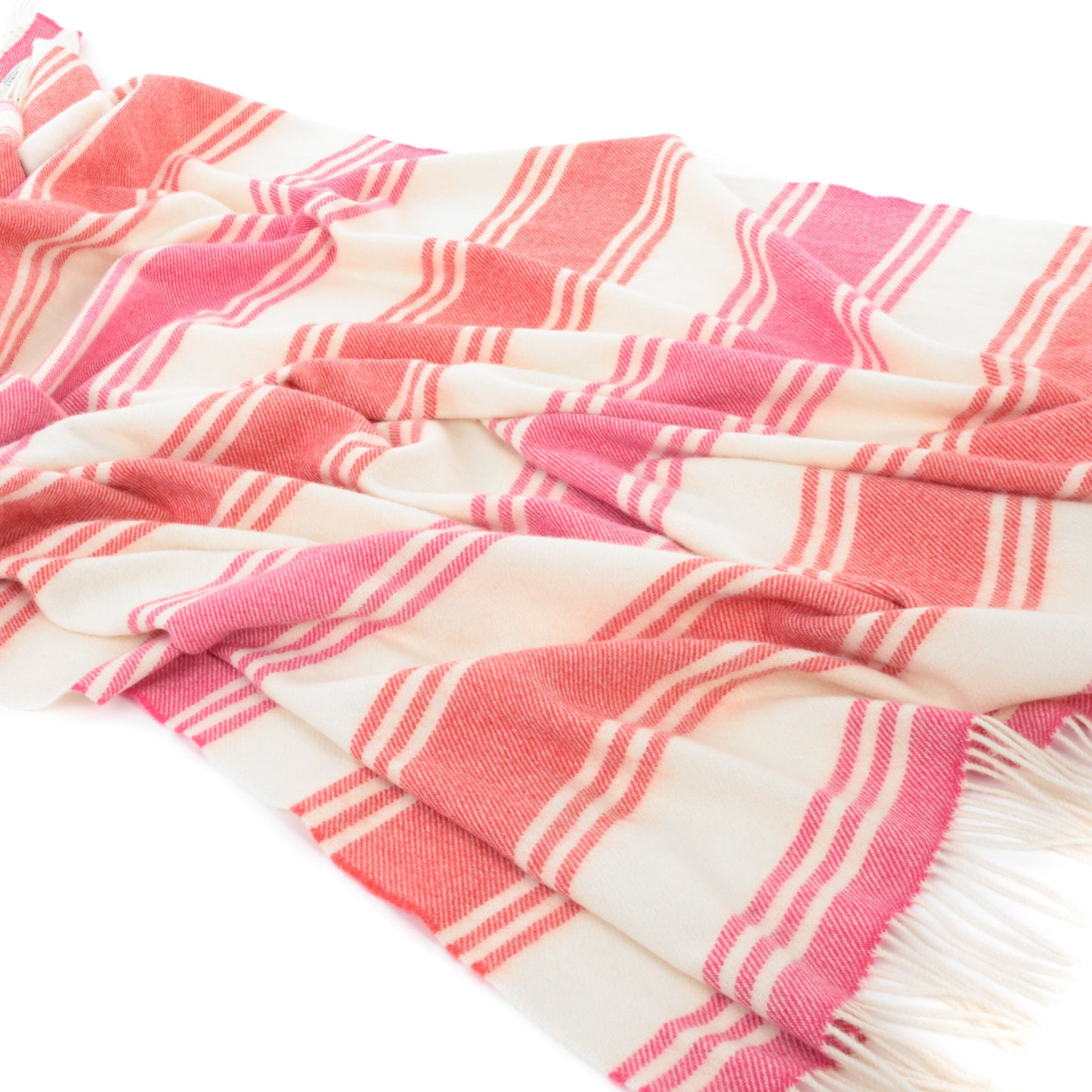 Lammwolldecke mit Streifen in Koralle & Natur