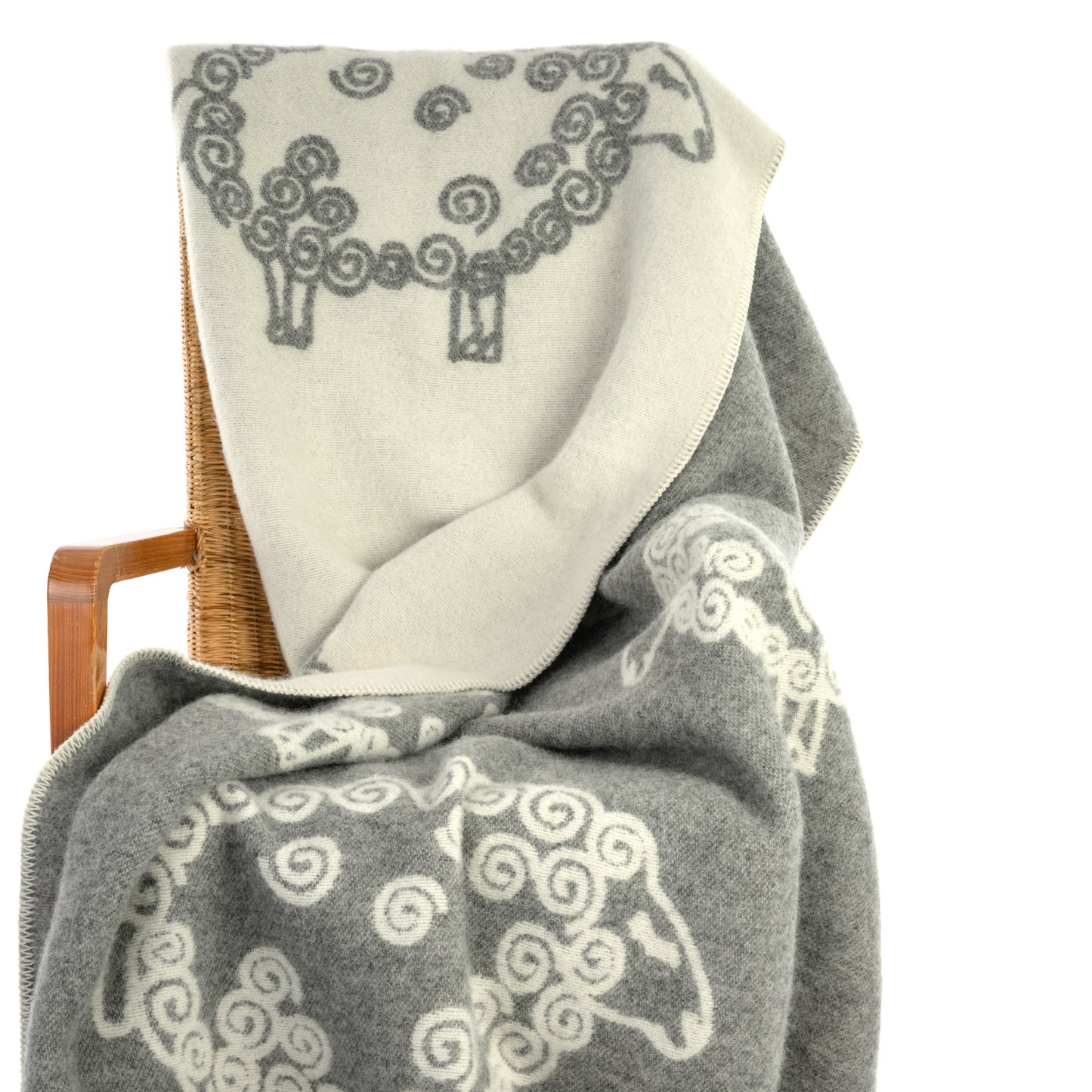 Das dezente Schafmotiv verleiht der Decke einen charmanten, nordisch inspirierten Charakter und macht sie zu einem stilvollen Begleiter für Sofa, Sessel oder Bett.