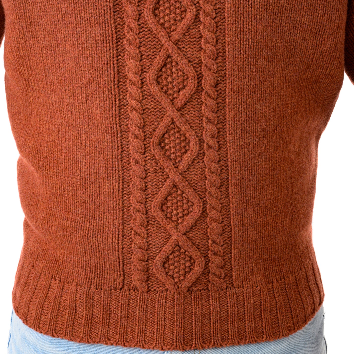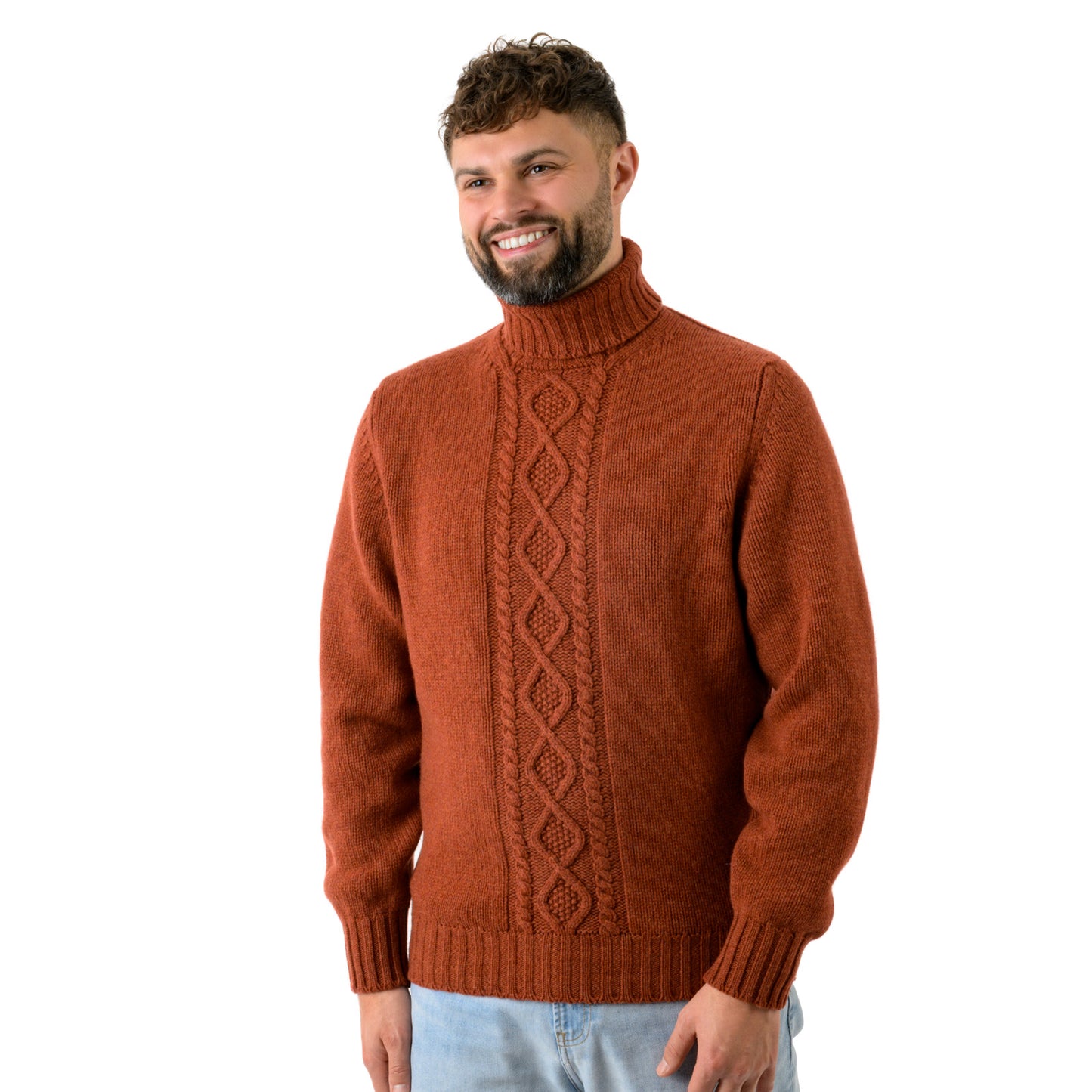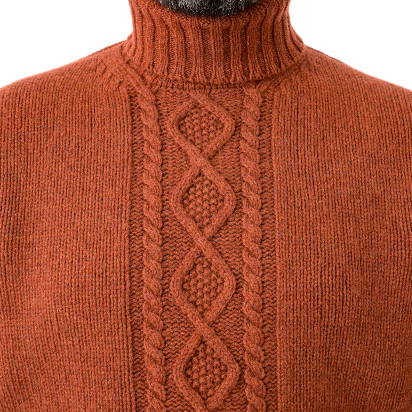 Dieser kernige Herrenpullover mit Rollkragen ist ein echtes Lieblingsstück für die kühle Jahreszeit. Gefertigt aus 100% Geelong-Lammwolle, überzeugt er mit besonders weichem Griff, angenehmer Wärme und natürlicher Atmungsaktivität. Das markante Zopfmuster im Frontbereich verleiht dem Pullover eine klassische, maskuline Note und sorgt für eine schöne Struktur.