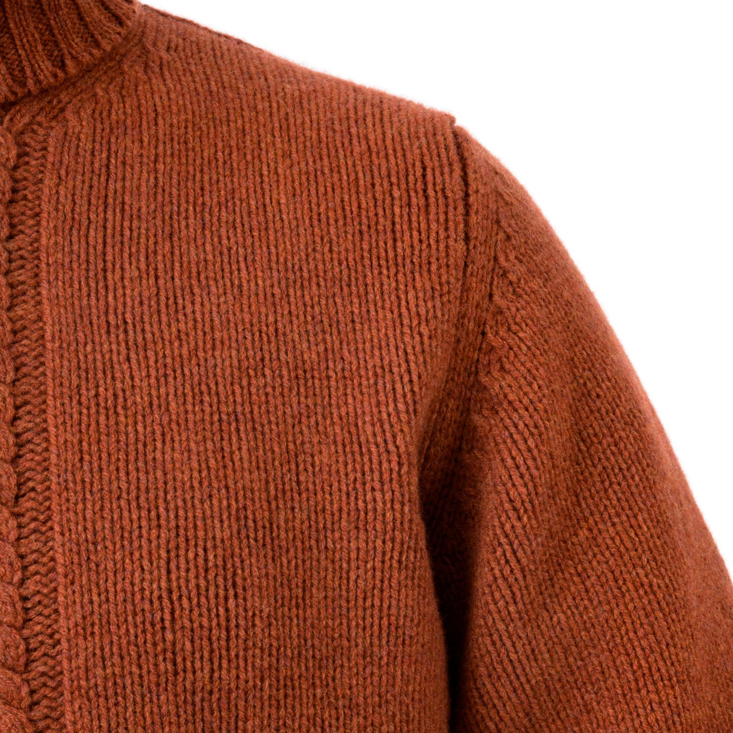 Die rostfarbene Nuance bringt Wärme in jedes Outfit und lässt sich vielseitig kombinieren – ob zur Jeans für den Alltag oder zur Stoffhose für einen gepflegten Look. Der Rollkragen schützt zuverlässig vor Wind und Kälte und macht den Pullover zum idealen Begleiter an kalten Tagen.