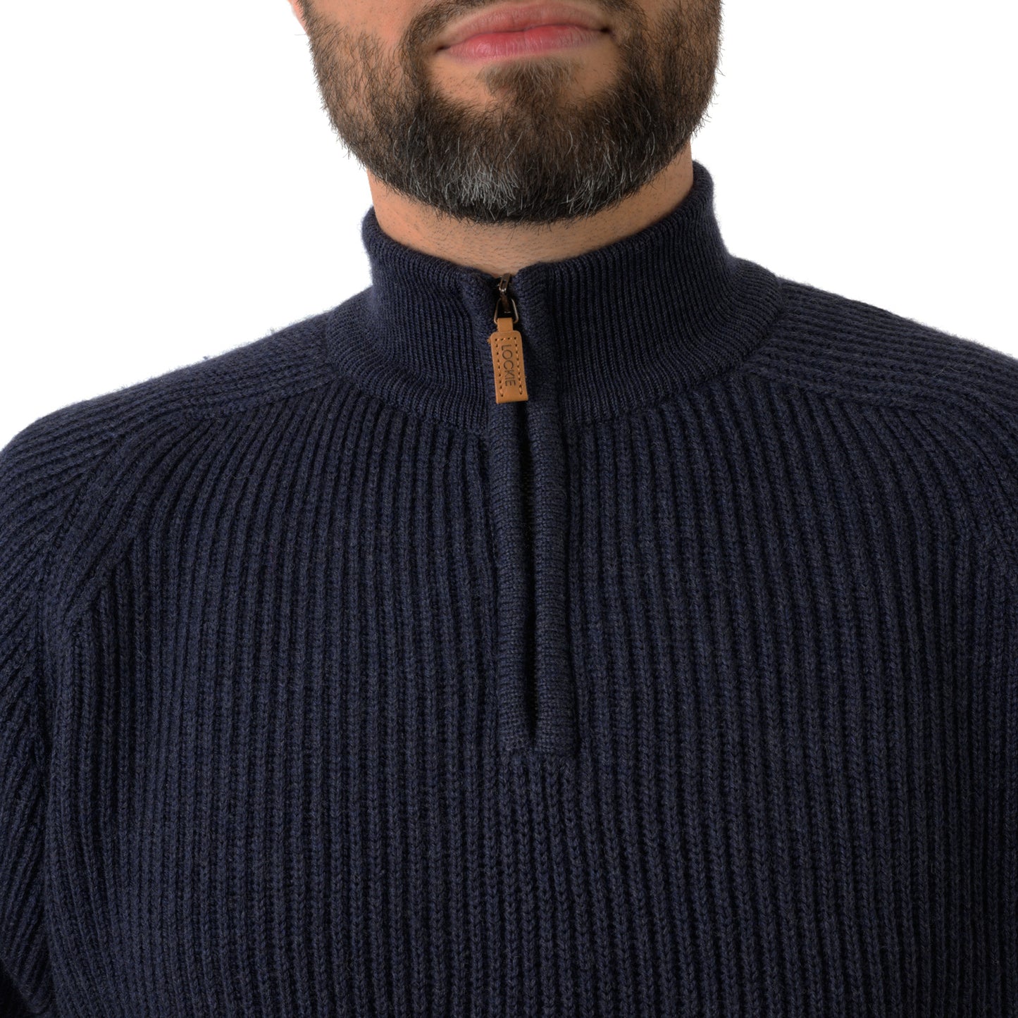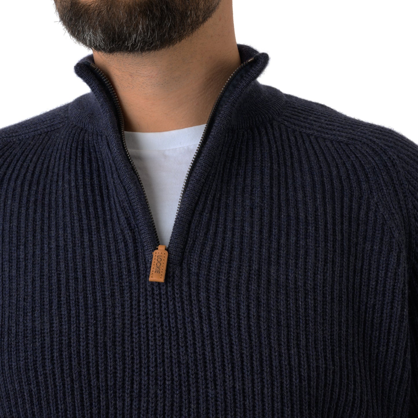 Ein Pullover mit Charakter: Dieser exklusive Herrenpullover mit Stehkragen und Reißverschluss wird aus 100 % extra feiner Merino-Schurwolle gefertigt. Das Material ist weich, angenehm warm und bietet ein hervorragendes Tragegefühl – perfekt für kühlere Tage. Der Stehkragen mit Reißverschluss sorgt für Flexibilität und einen modernen Look, während die raffinierte Saddle-Shoulder-Schulterpartie einen bequemen Sitz und viel Bewegungsfreiheit bietet. Hergestellt in Schottland vom Traditionsunternehmen William Lockie, das seit 1874 für höchste Strickqualität steht.