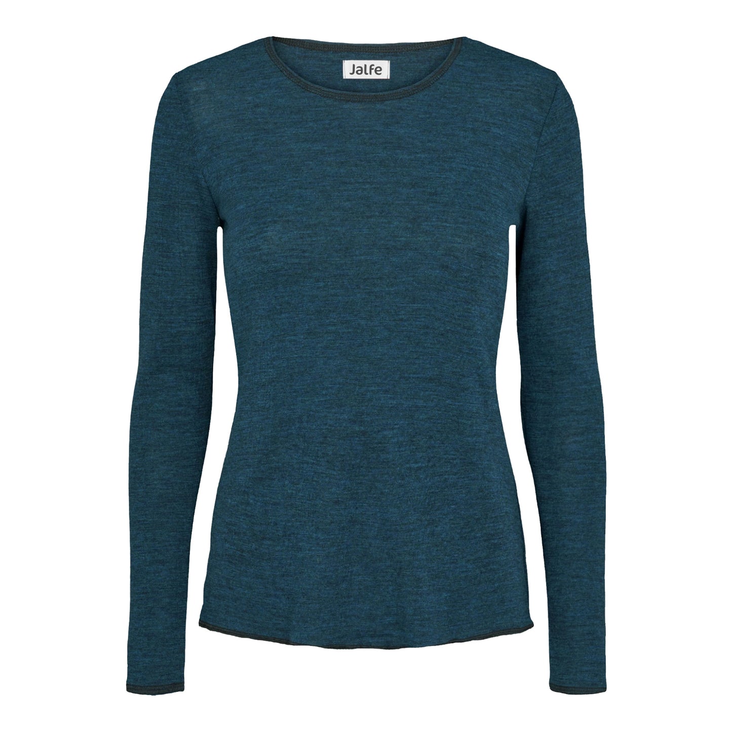 Unifarbenes Langarm-Shirt aus weicher Merinowolle. Der Hersteller JALFE aus Dänemark verwendet mulesingfreie Schurwolle des Merinoschafs, somit wird auf das Tierwohl geachtet. Ein Must-Have in jedem Kleiderschrank.