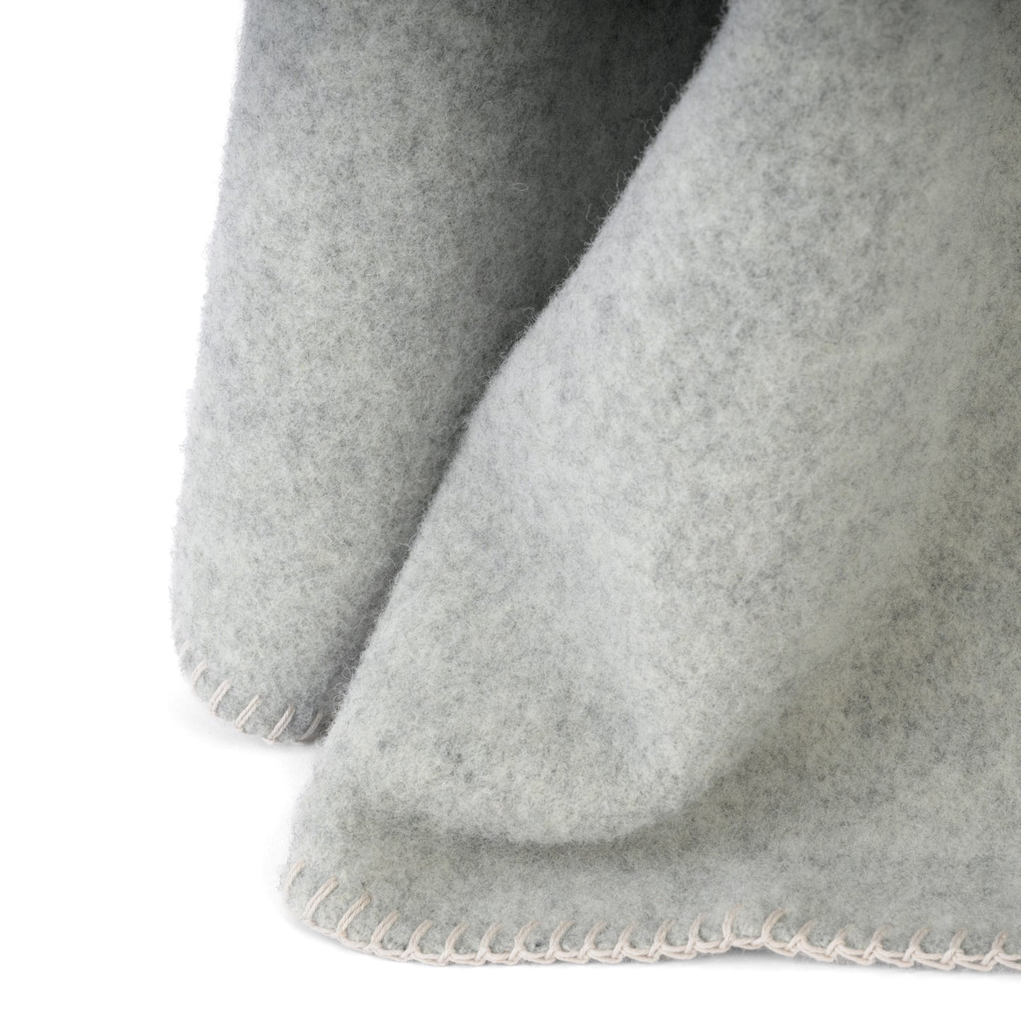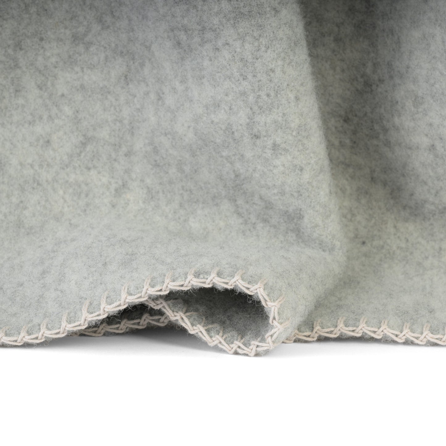 Die hochwertige Umkettelung verleiht der Decke eine klare, handwerkliche Optik und sorgt gleichzeitig für langlebige Stabilität an den Kanten. In ihrem ruhigen, hellgrauen Farbton fügt sich Klara mühelos in moderne wie klassische Wohnkonzepte ein.
