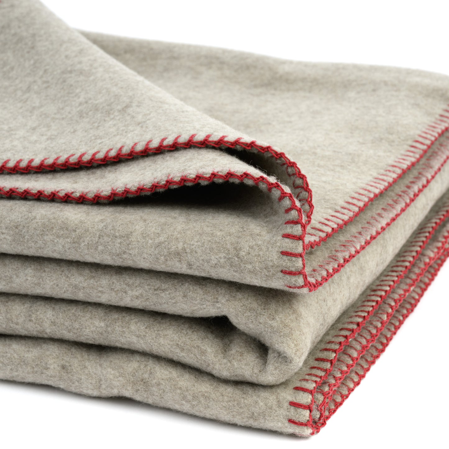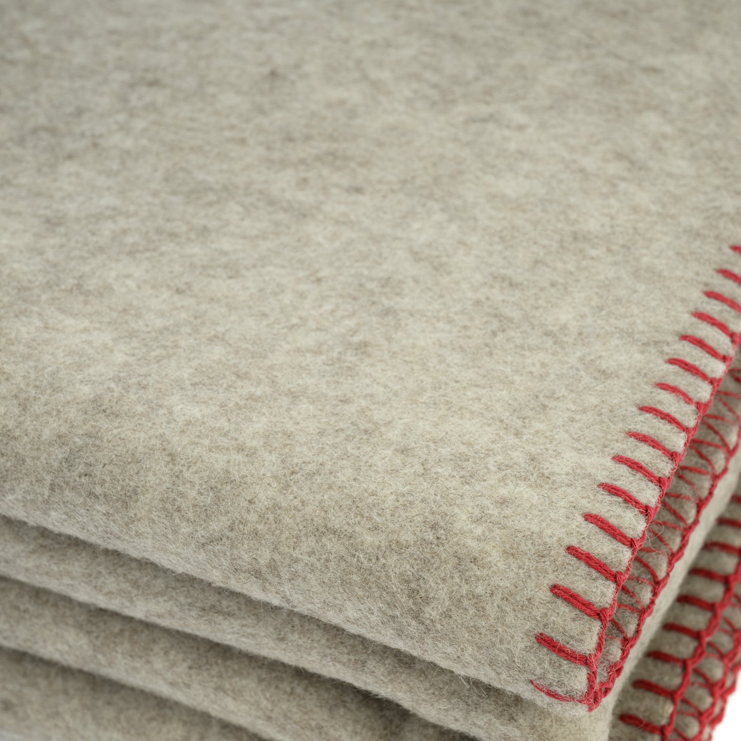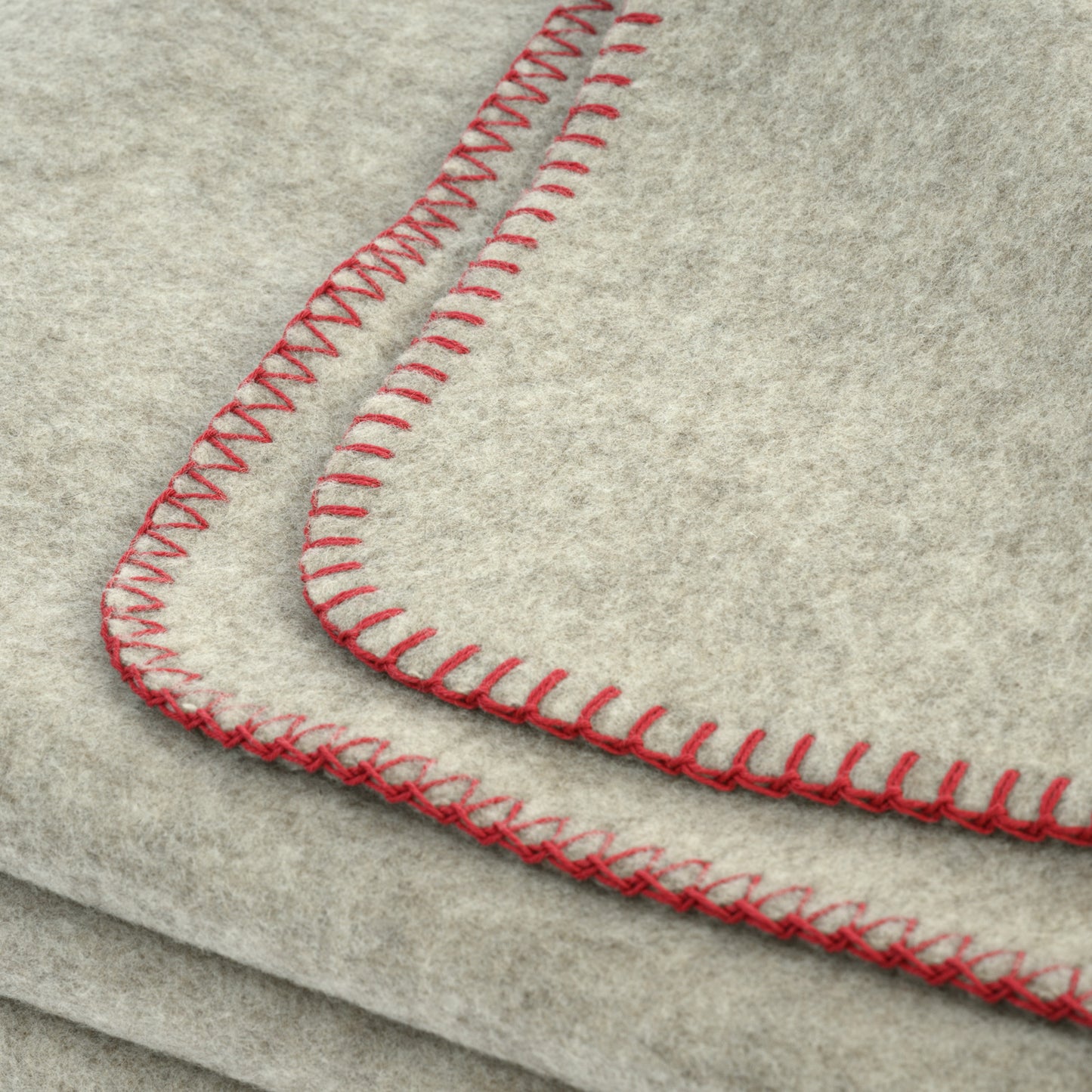 Sehr weiche Lammwolldecke "LINA" mit roter Umkettelung