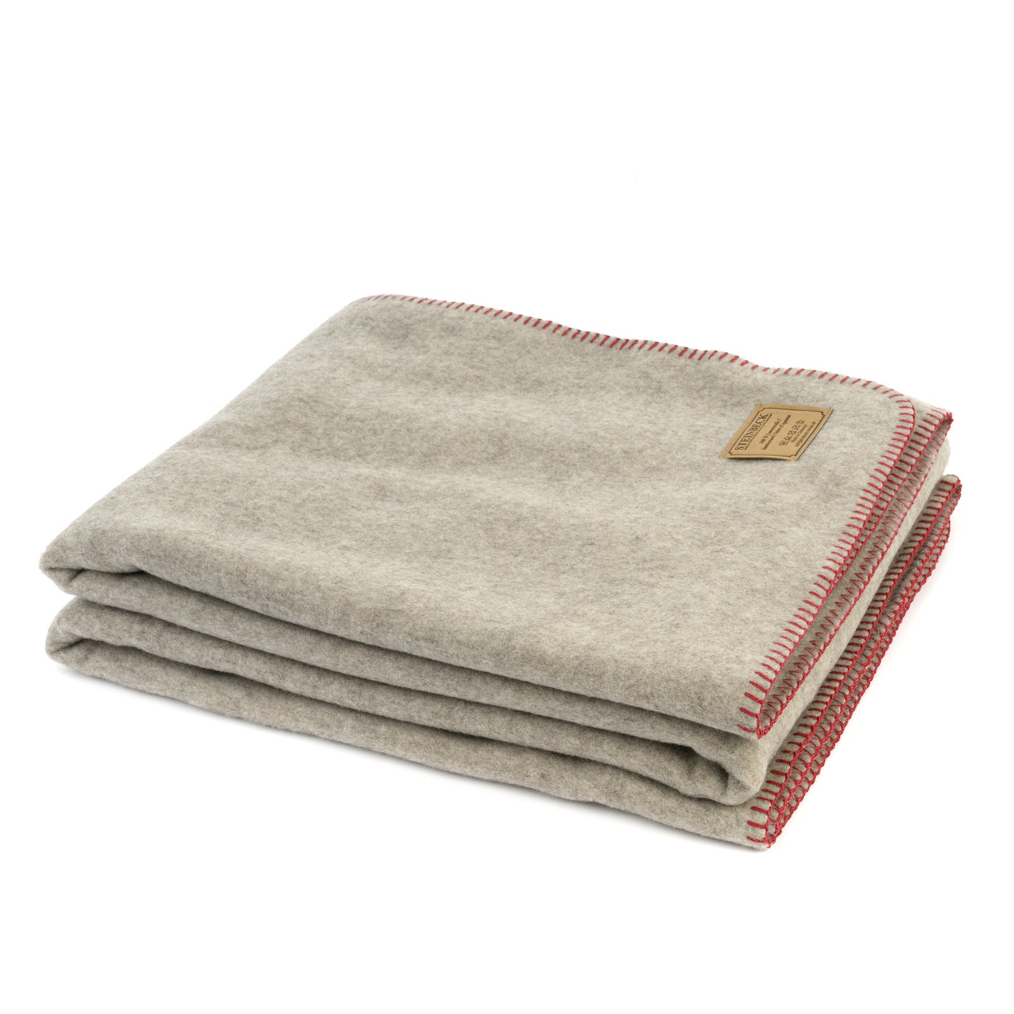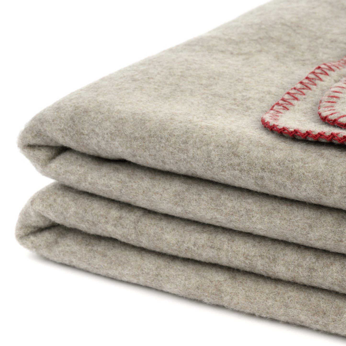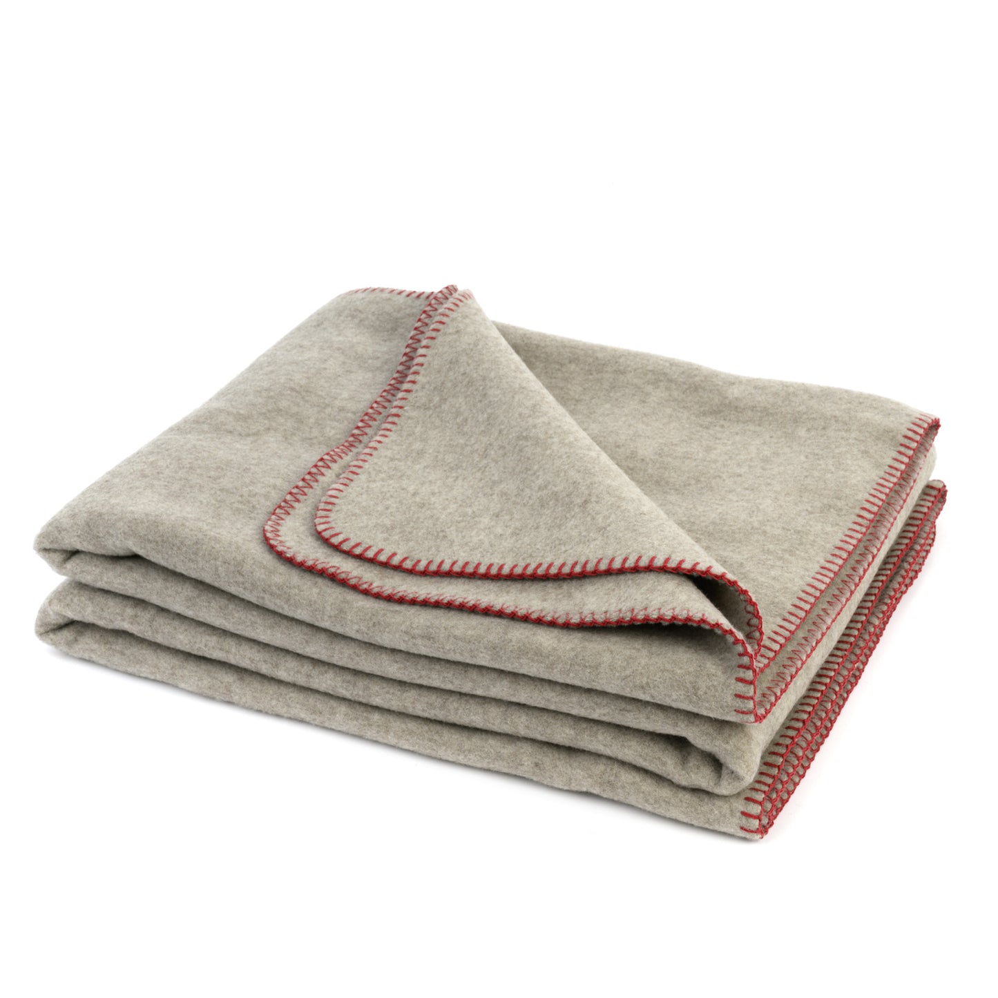 Sehr weiche Lammwolldecke "LINA" mit roter Umkettelung