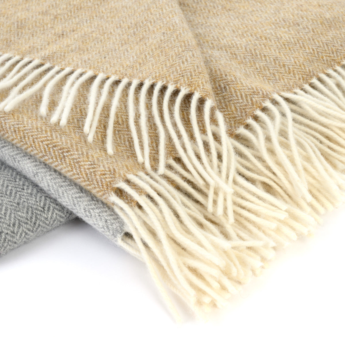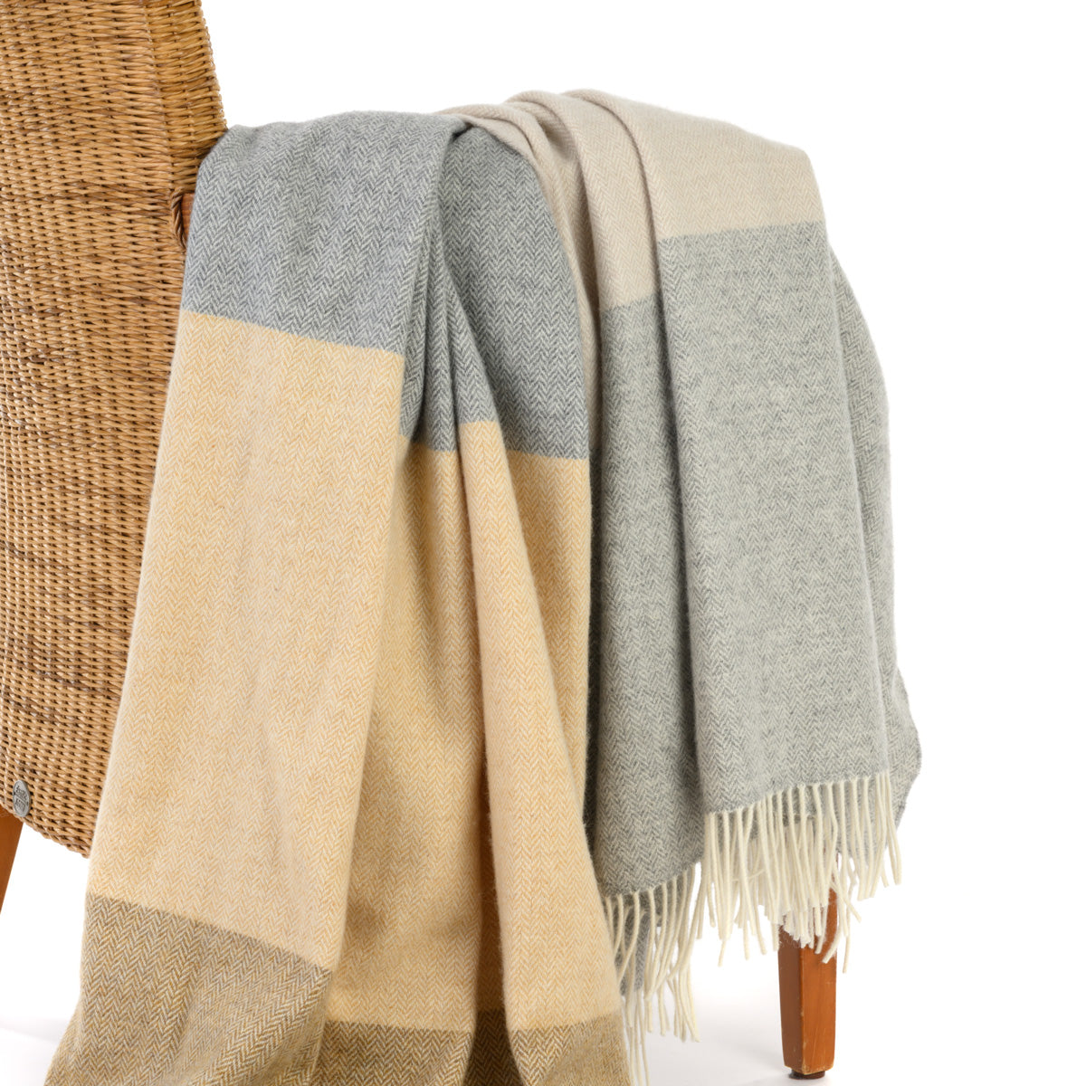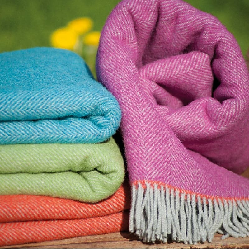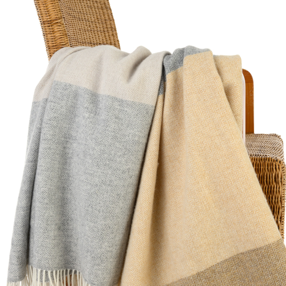 Große Lambswooldecke mit feinem Fischgrätmuster