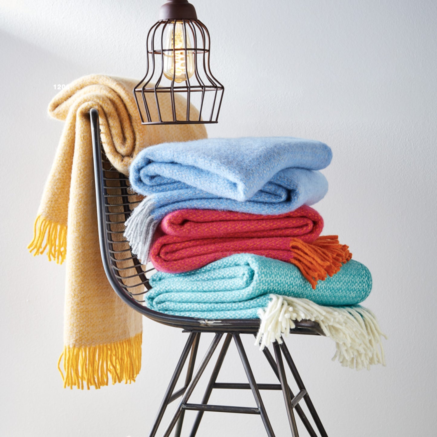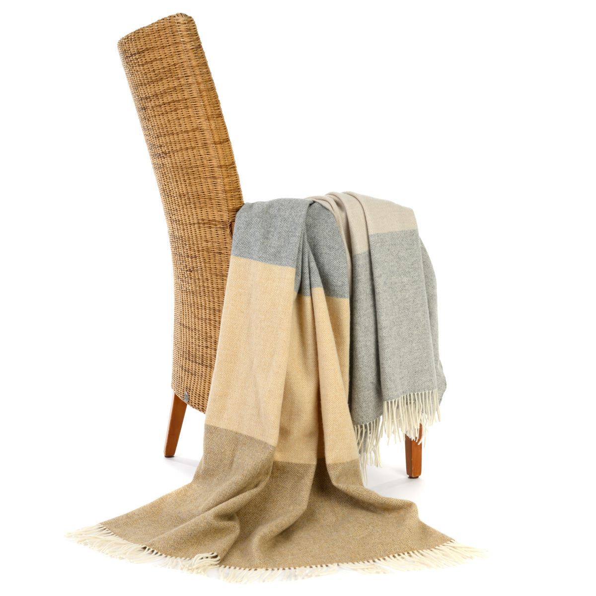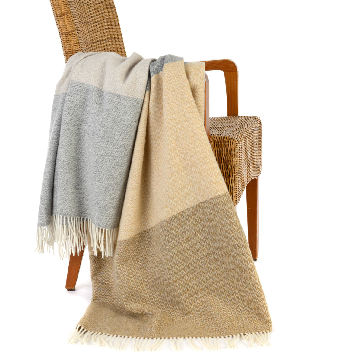 Große Lambswooldecke mit feinem Fischgrätmuster